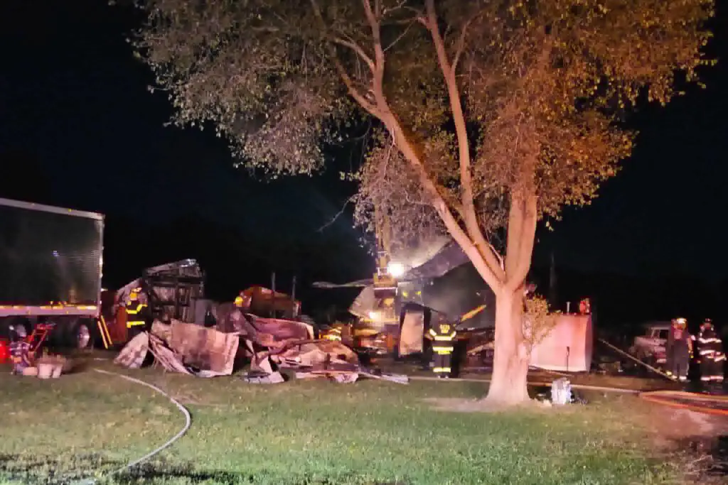 The two vehicles parked next to the barn were a total loss, but firefighters were able to keep the flames confined to the barn and prevented it from spreading to a nearby semi-trailer. There were no injuries reported and no animals were harmed.
