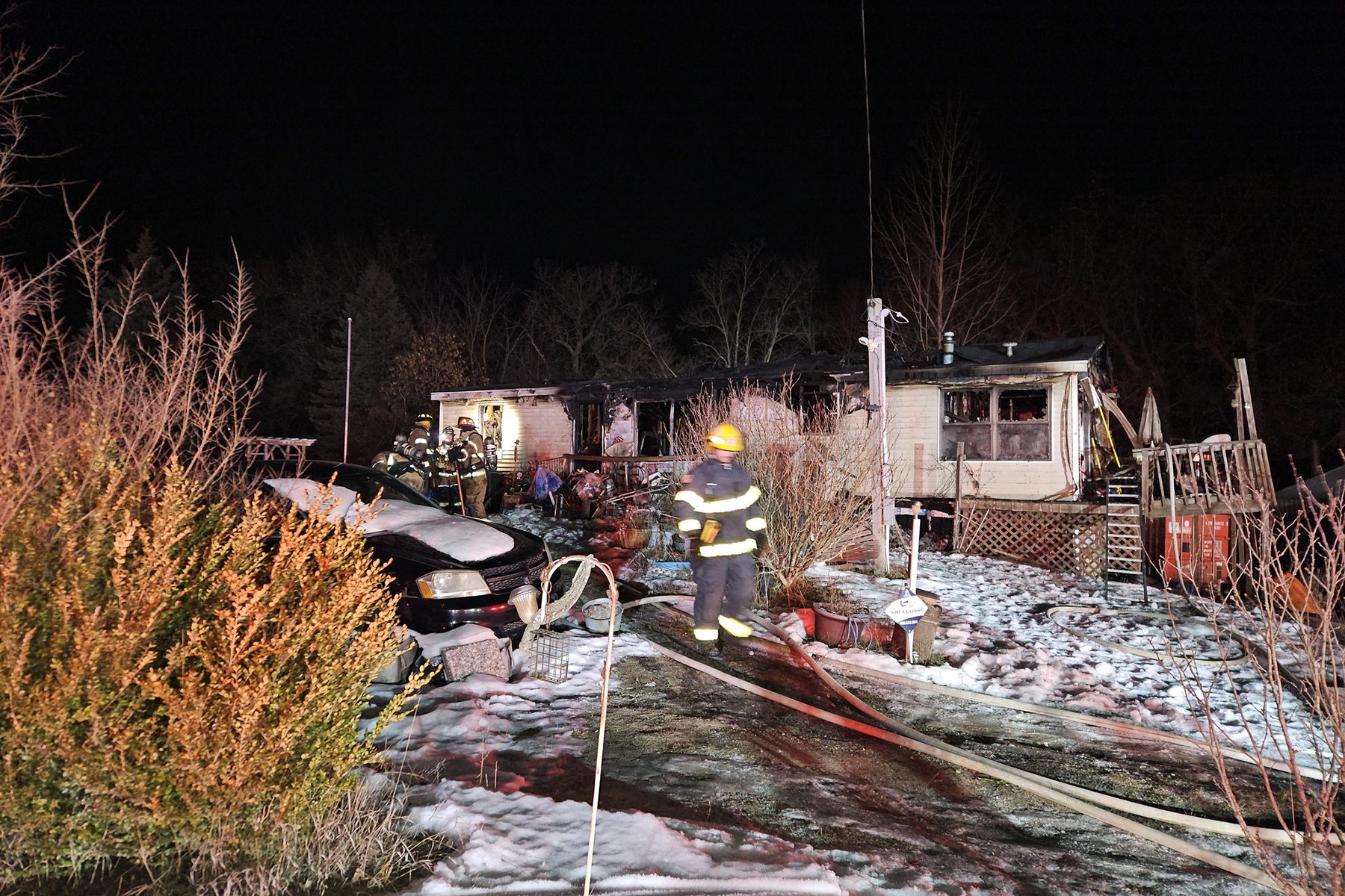 1. Firefighters from five area fire departments responded to a fire that destroyed a modular home early Friday morning at 5024 W. Fenwick Road in Fairplain Township. — Submitted photo | Sheridan Fire Authority