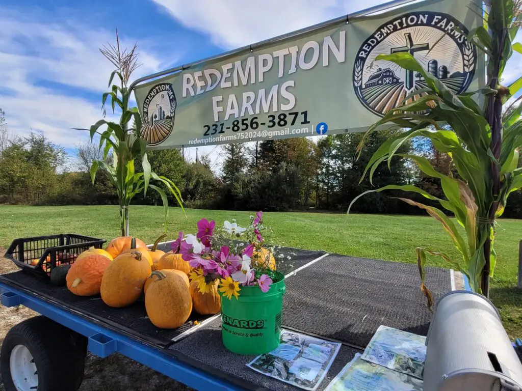 A picture of pumpkin sales to raise funds for Redemption Farms, a Howard City-based non-profit that aims to provide a recovery space for people working to recover from addiction. Redemption Farms will host a free Community Thanksgiving dinner on Thanksgiving Day at Grace Community Church in Howard City. — Submitted photo